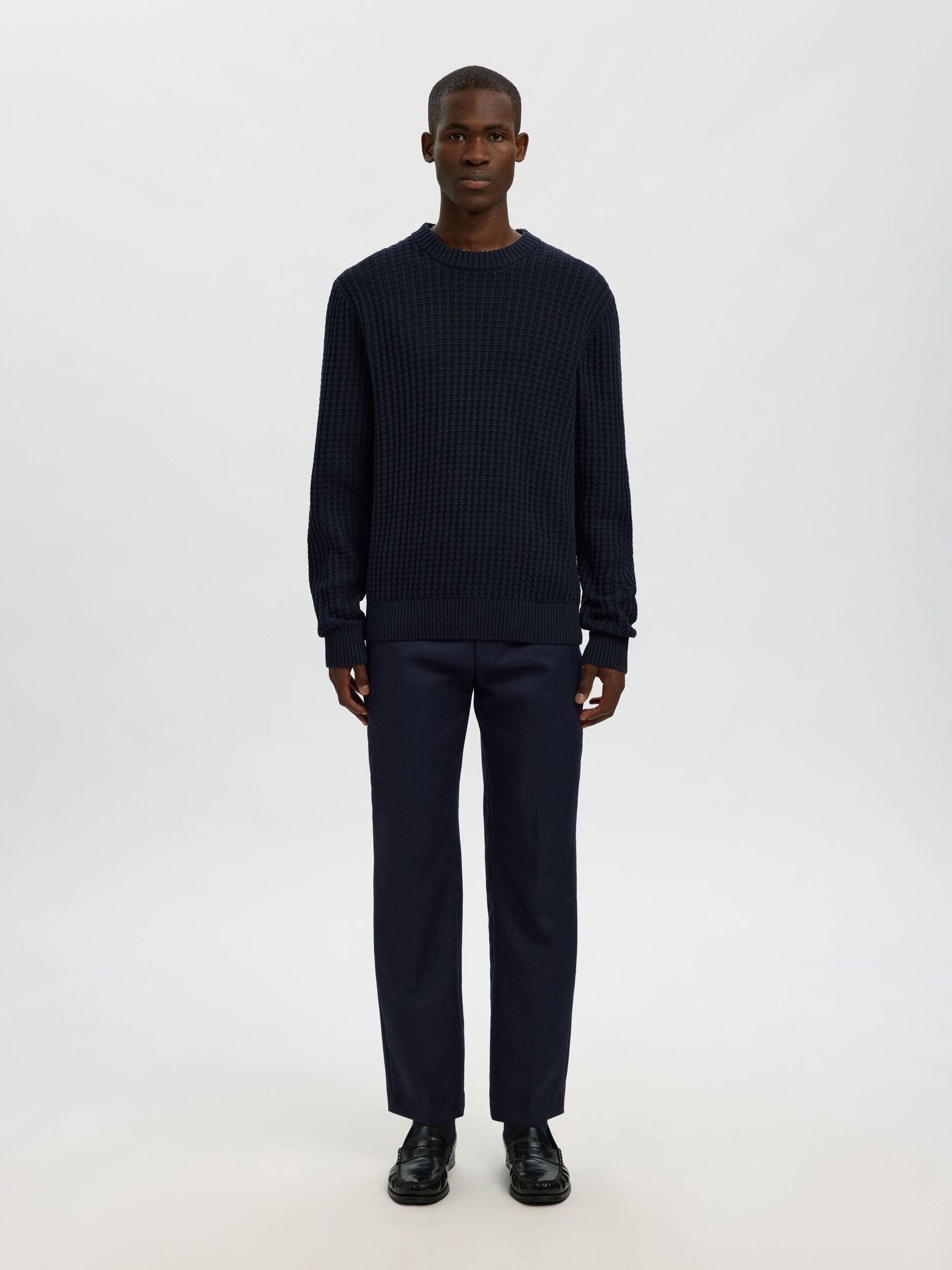 Selected structure knit crew neck